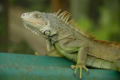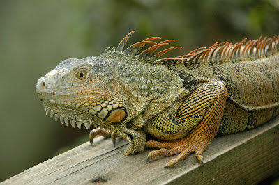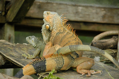 I took a few pictures of the iguanas. Coincidentally, it was mating season, and the big alpha male, Gomez, was busily engaged in mating with a rather passive female. Eddie introduced me to George, another male, who is only able to breed when Gomez is similarly occupied. Otherwise Gomez doesn’t allow George to breed. George is not happy with this situation, and he is the most aggressive iguana if approached. He puffs out his neck, and may swing his tail at someone who gets too near. Eddie says this can hurt if you are struck by a flying tail. There was a separate cage filled with younger iguanas that had hatched in June and July.