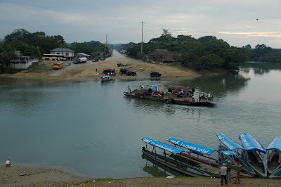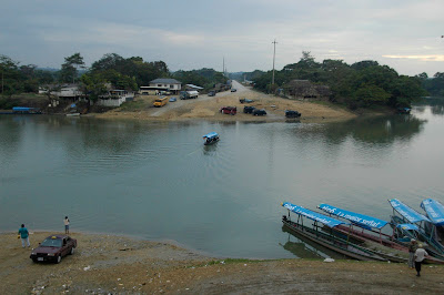 Sayaxche is an interesting little town on the banks of a river where there is no bridge for the main highway. At the river, there are narrow wooden passenger boats and a car ferry across. I got a hotel with a large shared balcony overlooking the river and the boats crossing back and forth. It was interesting watching the action as I relaxed at the hotel and the sun went down, but the noise from boats wakened me during the night. Sometimes the boats were jammed with passengers standing and with no evidence of life preservers. It appears Guatemala has no safety standards for boats.