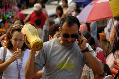 I took a number of pictures — some surreptiously of the general action, and some posed, like the one of the lady selling flowers, who took off her jacket for the picture. At one bookstore where I tried to find a map, the young sales women asked me to take a picture of them, so I did, as did several other people in the street. I then went to a place that does instant digital pictures and got some 4 X 6 prints to give to the people who posed. They were thrilled, and one little girl (about 10) gave me a hug, and “Gracias. Feliz Navidad.”