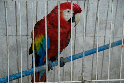 On the hotel balcony was a cage with my favorite kind of bird, a scarlet macaw. He looked so confined I was tempted to release him, but the hotel people might not have been too happy if I’d done that.